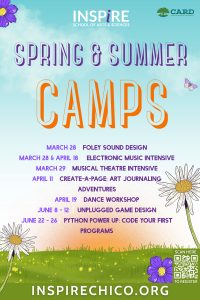 We’ve paired up with Chico Area Recreation & Park District, to bring the community a wide variety of fun, interactive, spring and summer camps for students! Ages vary for each camp. Registration opens February 18th.